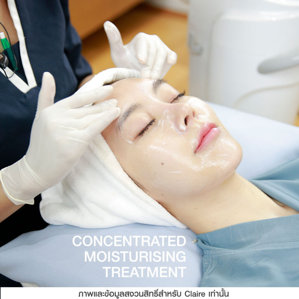 - Concentrated Moisturising Treatment การนวดหน้าด้วยมือเป็นการบำรุงผิวอย่างล้ำลึกด้วยผลิตภัณฑ์สูตรพิเศษ Claire เนื้อมอยเจอไรเซอร์ละเอียดละลายไปกับผิวได้เป็นอย่างดี ช่วยทำให้ผิวเนียนนุ่มชุ่มชื้นขึ้น