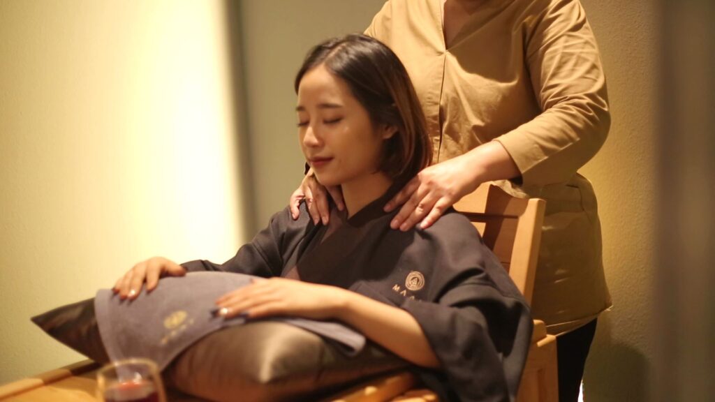 นอกจากนี้สาขาชิดลมจะมีความสุดพิเศษอีกหนึ่งอย่าง คือ “Office Syndorme Therapy” ศาสตร์การนวดไทยที่ผสานกับการนวดน้ำมัน โดยจะนวดตั้งแต่บริเวณศีรษะ คอ บ่า และไหล่ เพื่อช่วยผ่อนคลายความเครียด ความเมื่อยล้า และความตึงของกล้ามเนิ้อจากการนั่งทำงานในออฟฟิศด้วยท่าใดท่าหนึ่งต่อเนื่องเป็นเวลานาน จนกลายเป็นโรคที่รู้จักกันว่า โรค Office Syndrome ซึ่งการนวดนี้มีความพิเศษอยู่ที่ “Detox & Destress Half Body Sauna” เป็นการซาวน่าครึ่งตัวล่างตั้งแต่บริเวณเอวลงมาถึงฝ่าเท้า ความร้อนจะทำให้กล้ามเนื้อผ่อนคลาย ลดความตึงเครียดได้เป็นอย่างดี และเนื่องจากบริเวณเท้าเป็นศูนย์รวมของอวัยวะทุกส่วนในร่างกาย ความร้อนจะช่วยให้ระบบไหลเวียนโลหิต และระบบเลือดลมหมุนเวียนสะดวก เรียกว่าเป็นอีกหนึ่งบริการทีต้องไม่พลาดสำหรับยุคนี้เลย