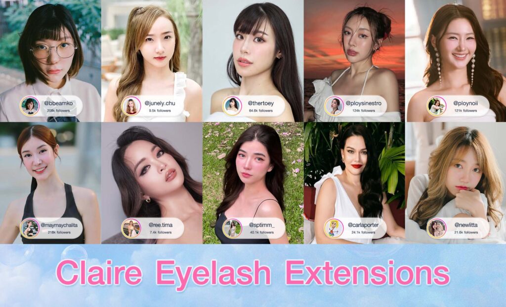 สไตลิสต์มืออาชีพมากประสบการณ์และทักษะในการออกแบบขนตาที่เหมาะสมกับรูปหน้าเฉพาะบุคคล เพื่อให้คุณได้รับบริการที่มีคุณภาพและผลลัพธ์ที่ตรงกับความต้องการอย่างสมบูรณ์แบบ ศาสตร์แห่งการต่อขนตาด้วยจิตวิญญาณและความเชี่ยวชาญเพื่อรังสรรค์ขนตาที่สะท้อนตัวตนและเบาสบายตาไม่เหมือนใครตามปรัชญาของ Claire ที่มากกว่าการเสริมลุค แต่คือตัวตนที่สะท้อนผ่านดวงตา
