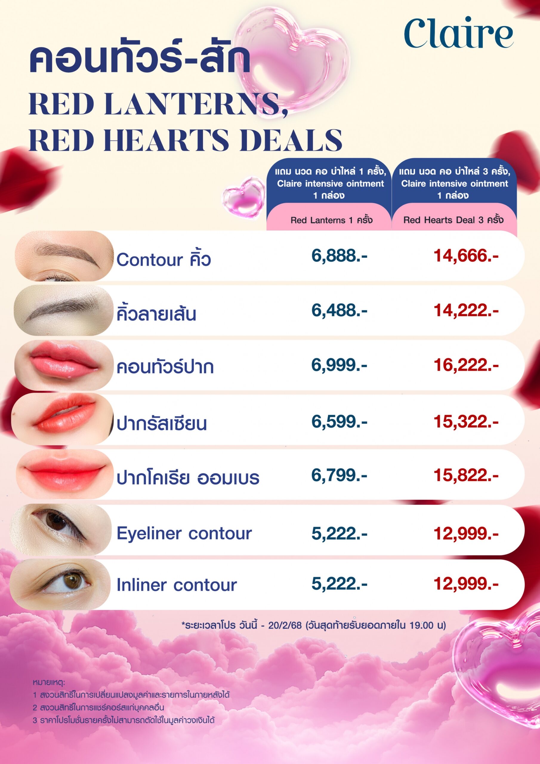 - เส้นต่อเส้น 140 เส้น ราคา 2,080.- (ปกติ 3,080.-) หรือ นวดหน้าฉ่ำวาว 60 นาที ราคา 1,800.- (ปกติ 2,800.-)