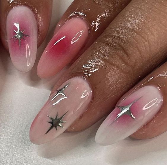 อีกหนึ่งไอเดียเล็บวาเลนไทน์สไตล์ Y2K ที่ก็ปังไม่แพ้กัน ทำเล็บสีขาวเป็นพื้นและเพิ่มสีชมพูไล่ Gradient ให้มีความฟุ้งๆ เติมกลิตเตอร์เติมความเมทาลิคก็คือตัวแม่มาก