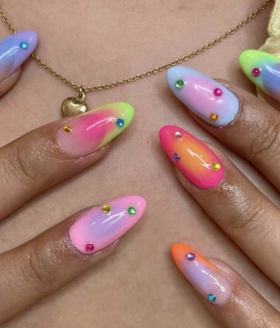 และใครว่าเล็บวาเลนไทน์ต้องชมพูแดงขาวเท่านั้น วาเลนไทน์ก็สีอื่นได้ Colorful หลากหลายสีสันให้เข้ากับสไตล์ Y2K ไปเลย