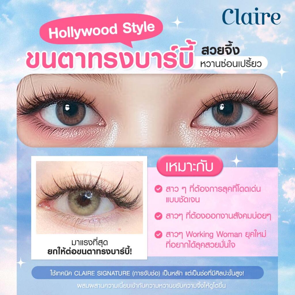 มาแรงที่สุดในพ.ศ. นี้ ต้องยกให้ต่อขนตาทรงบาร์บี้ค่ะซิส! ทรงนี้คือการผสมผสานความเนี้ยบเข้ากับความหวาน ขยับความจึ้งให้ดูโตขึ้น ต้องทรงนี้เลย! Hollywood Style คือคำตอบของคนที่อยากได้ฟีลสวยแพงแบบไม่ต้องตะโกน แต่พร้อมฟาดทุกลุคได้เลย
