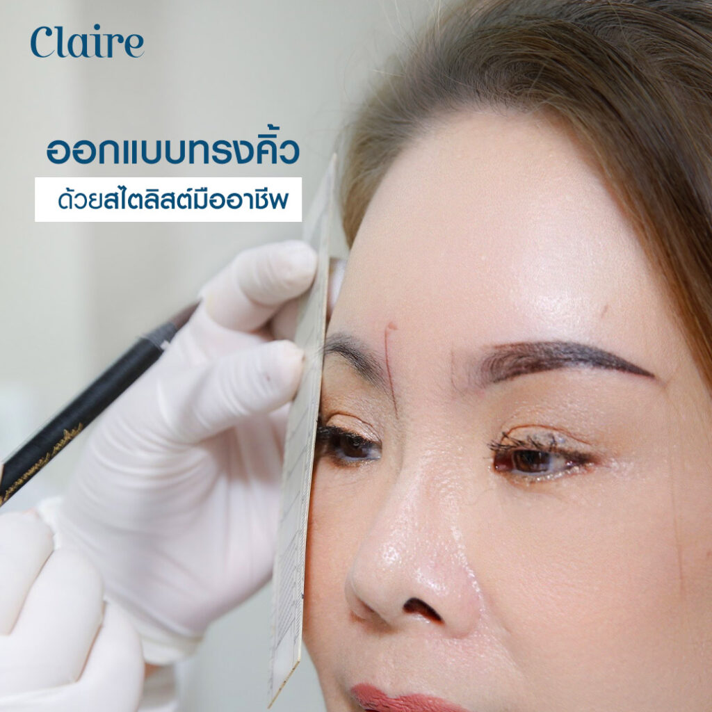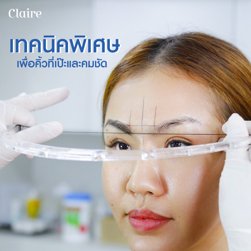 ขั้นตอนสำคัญถัดมาคือการวัดสัดส่วนคิ้วที่ถูกต้องตามหลักสากล โดยใช้เครื่องมือวัดเพื่อกำหนดจุดเริ่มต้น จุดหักมุม และจุดสิ้นสุดของคิ้ว เพื่อให้คิ้วทั้งสองข้างมีความสมมาตรและสมบูรณ์แบบมากที่สุด