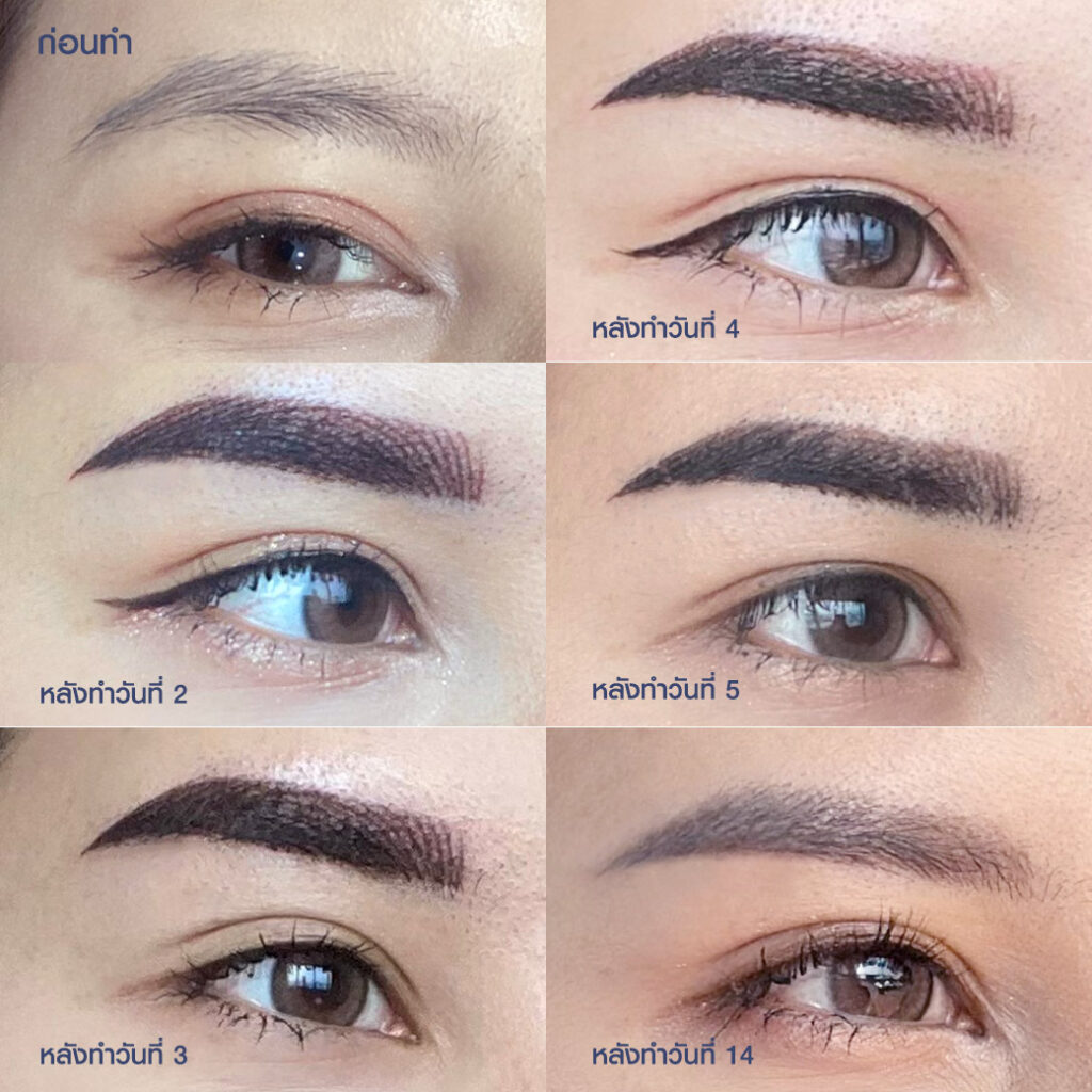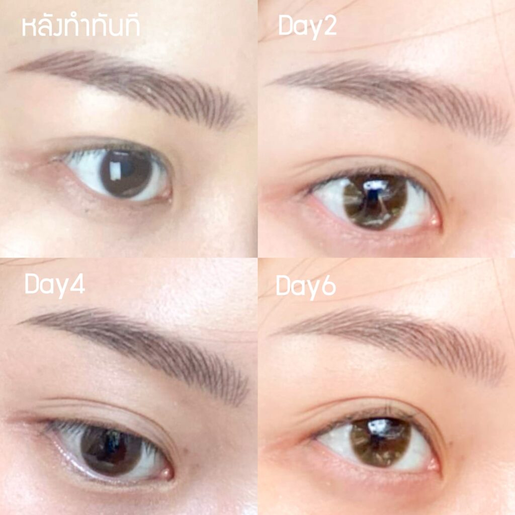 เมื่อสะเก็ดคิ้วหลุดออกหมดแล้ว สีคิ้วอาจจะดูจางลง ซึ่งเป็นเรื่องปกติ ไม่ต้องตกใจ เพราะสีจะค่อย ๆ ชัดขึ้นและเซ็ตตัวเต็มที่ภายใน 1 เดือน
