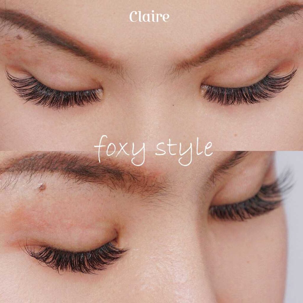 ต่อขนตา Foxy Eyes เป็นสไตล์ที่นิยมในโซนยุโรปและตะวันออกกลาง สายฝอต้องไม่พลาด เน้นช่วงหางตาให้หนาและยาวเป็นพิเศษ โดยจะเน้นให้หางขนตามีความฟูด้วย สไตล์นี้ออกแบบให้หางตามีความยาวและงอนแบบสุดๆ ตาคมเฉี่ยวแบบจิ้กจอก สายฝอเลิฟสไตล์นี้มาก ให้คะแนนความเซ็กซี่ที่ 9/10