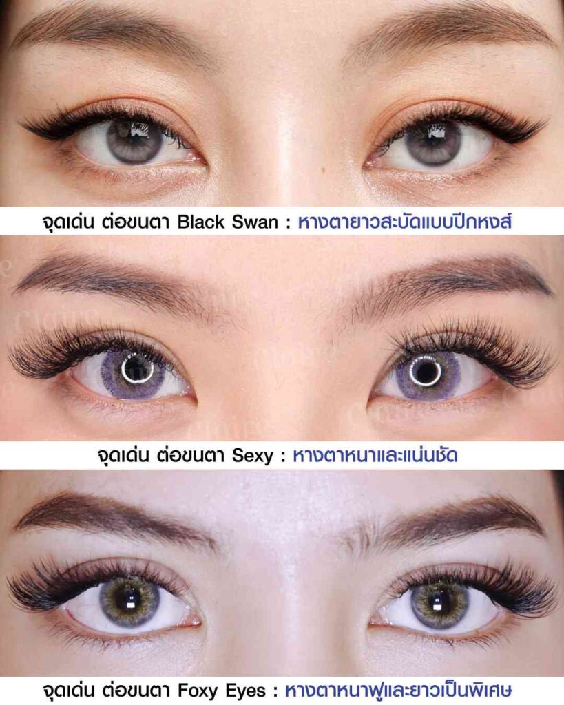 แต่ละสไตล์ก็มีความโดดเด่นที่แตกต่างกันอยู่ เป็น 3 สไตล์ที่อาจจะไม่ต่างกันมาก แต่จริงๆ แล้วมีความต่างกันอยู่ สาวคนไหนที่ชอบความชัดความแน่นแบบจัดเต็มก็แนะนำเป็นแบบ Foxy Eyes เลย ตาสวยคมแบบหางตาลากยาว แต่ถ้าตาเฉี่ยวแบบกำลังดี ไม่มากไม่น้อยเกินไปก็อีก 2 สไตล์ที่เหลือได้เลย แต่ช่วงนี้ก็ต้องบอกว่าสไตล์ยอดฮิตของ Claire ต้องเป็นขนตา Black Swan เท่านั้นเลย กระแสดีแบบไม่มีแผ่วเลย