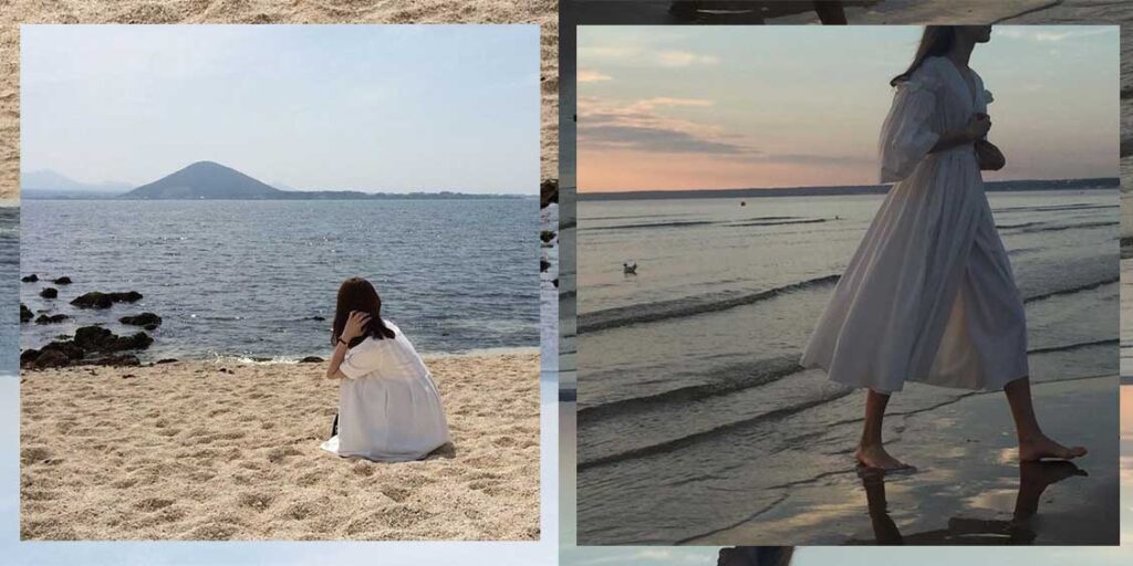 ไอเดียต่อมาสำหรับคนที่ไม่มั่นใจในใบหน้าหรืออาจจะเป็นสิวในตอนนั้นพอดี แนะนำว่าให้หันหลังถ่ายกับวิวทะเลแบบเผลอๆ ไม่ได้เผลอจริงก็ต้องแกล้งเผลอกันไปก่อนค่ะ หันหลังให้กล้องเสมือนว่ากำลังมองไปที่ทะเลแบบชิลๆ ได้ภาพแบบอาร์ตๆ เผลอแบบสวยๆ