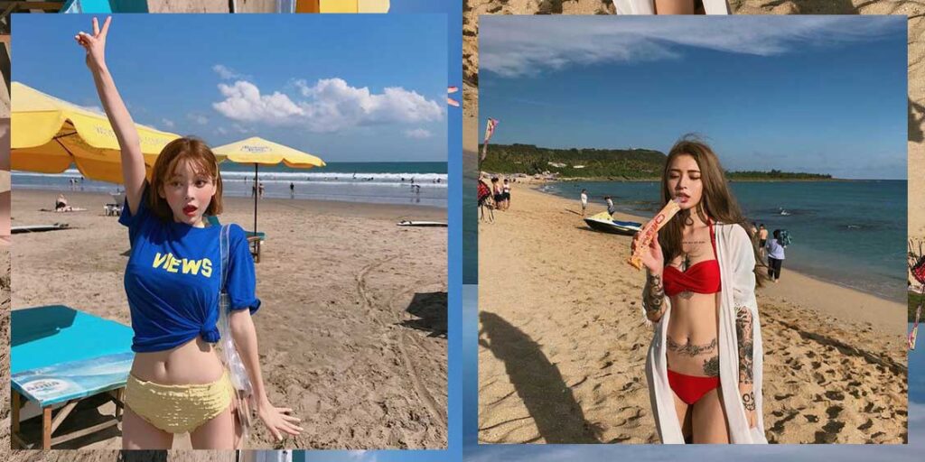 ไอเดียการถ่ายรูปที่ขาดไม่ได้เมื่อต้องไปทะเลคือ ชุดว่ายน้ำหรือบิกินี่นั่นเองค่ะ ใส่ชุดบิกินี่ตัวโปรดหรือชุดว่ายน้ำคอลเลคชั่นใหม่ลงไปถ่ายรูปที่ชายหาดริมทะเลสวยๆ ให้เห็นวิวทั้งท้องฟ้าและทะเลไปพร้อมๆ กัน เรียกยอดไลก์ได้ดีเลยทีเดียว
