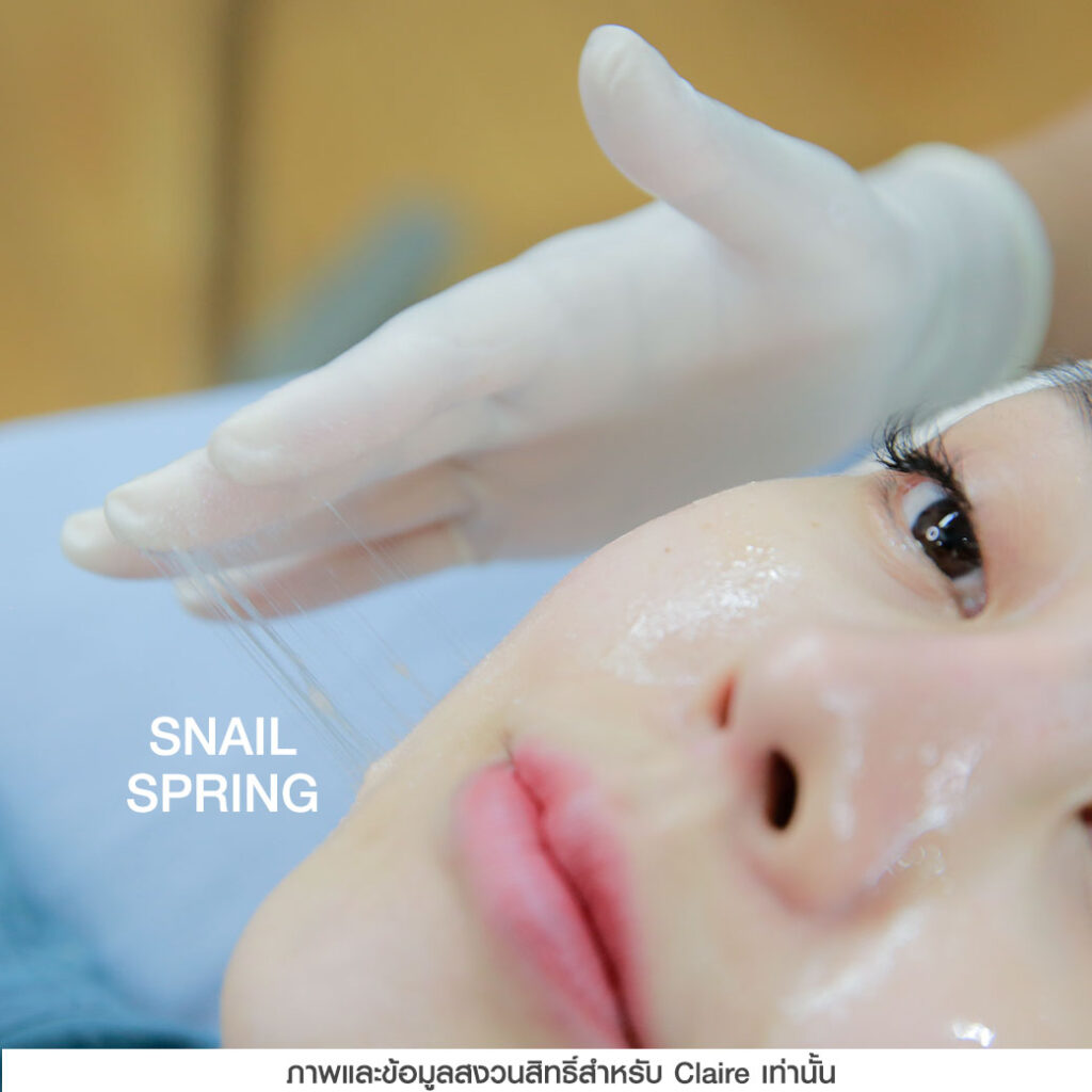 บำรุงผิวอย่างล้ำลึกขั้นกว่าด้วย Snail Spring มาสก์เมือกหอยทาก เป็นขั้นตอนที่จะมีการตบใบหน้าเบาๆ เพื่อช่วยกระตุ้นการไหลเวียนโลหิตบริเวณใบหน้า ช่วยให้มาส์กซึมเข้าสู่ผิวได้เป็นอย่างดี ทำให้ผิวหน้าขาวใสอมชมพู