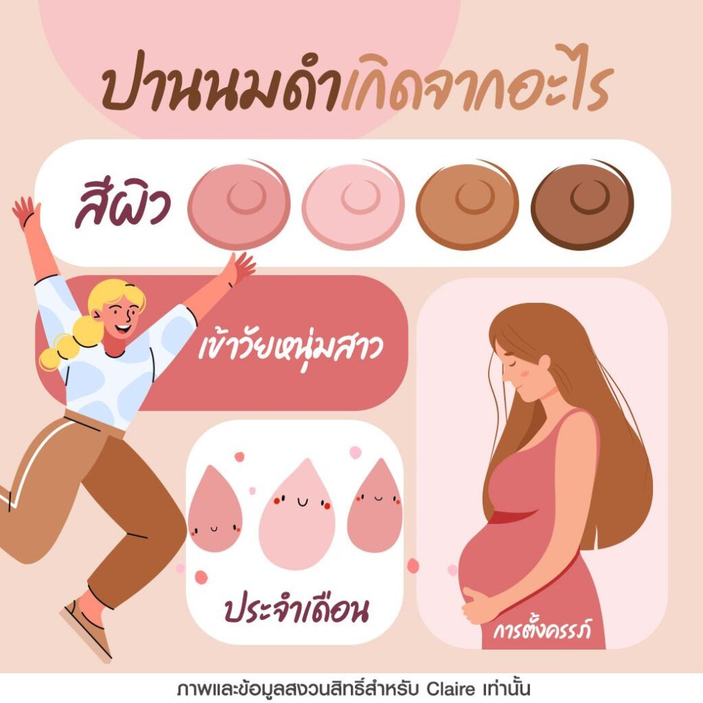 - ประจำเดือน การเปลี่ยนแปลงของฮอร์โมนเพศหญิง ทำให้หน้าอกบวม ไวต่อความรู้สึก และปานนมอาจคล้ำขึ้นด้วย