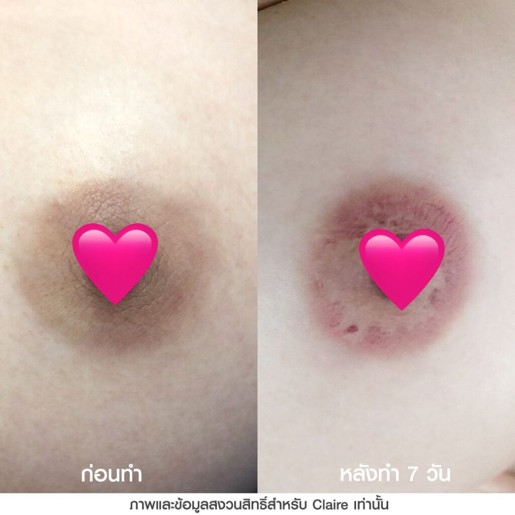 ดังนั้นไม่ต้องกังวลถ้าสีปานนมหลังลอกจากการฝังสีในครั้งแรกจะเข้มกว่าตอนก่อนทำ หากมาฝังสีปานนมในครั้งที่ 2 ก็จะทำให้สีปานนมสว่างขึ้น และจะยิ่งได้สีปานนมแบบธรรมชาติที่สุดก็แนะนำฝังสีปานนมให้ครบ 3 ครั้ง เพื่อผลลัพธ์ที่ดีที่สุด! แก้ปัญหาปานนมดำ คล้ำได้แบบฉ่ำๆ สีละมุนแน่นอน