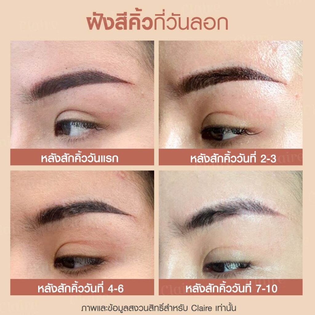 หลังสักคิ้ววันแรก : สีคิ้วจะมีความเข้มคมชัด และอาจจะเข้มมาก จนบางคนอาจจะรู้สึกกังวลใจได้ ซึ่งจริงๆ สีคิ้วจะลอกและจางลงอีก