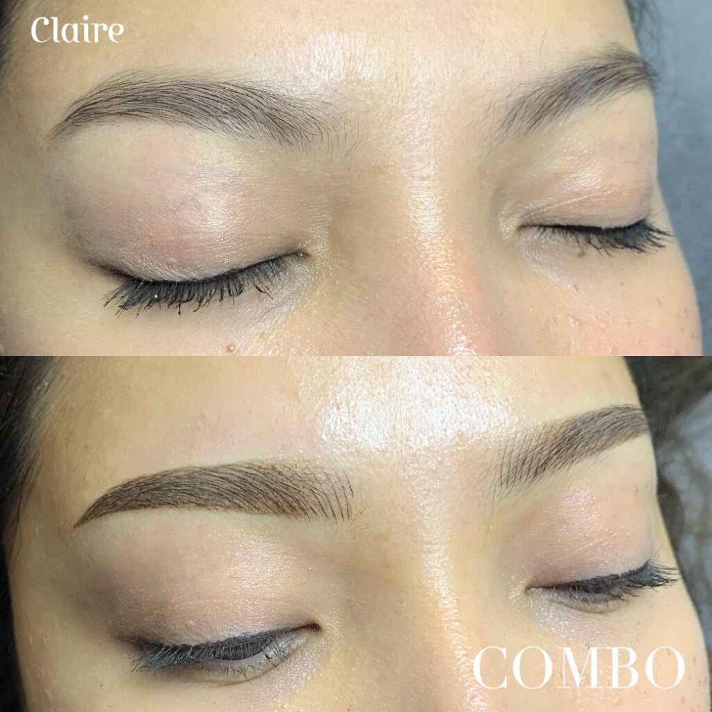 การสักคิ้ว Combo (ฝังสีคิ้ว Combo) เป็นเทคนิคล่าสุดของ Claire ที่เป็นการผสมผสานกันอย่างลงตัวของ 2 เทคนิค คือ ฝังสีคิ้วแบบลายเส้น และฝังสีคิ้วแบบคอนทัวร์ โดยบริเวณหัวคิ้วจะเป็นการลงแบบลายเส้นให้ลักษณะเป็นขนคิ้วจริงดูเป็นธรรมชาติ ส่วนบริเวณหางคิ้วจะลงด้วยแบบคอนทัวร์คล้ายการเขียนคิ้วแบบฝุ่น ทำให้หางคิ้วและช่วงท้องคิ้วมีความคมแบบเนี๊ยบๆ เป็นการสักคิ้วที่เหมาะกับคนที่มีขนคิ้วน้อย ขนคิ้วบางหรือไม่มีขนคิ้วเลย เทคนิคนี้จะช่วยให้คิ้วเป็นธรรมชาติมากที่สุด
